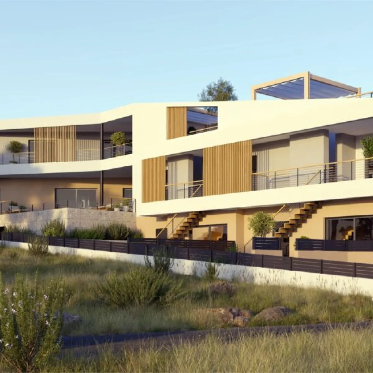 Obiteljska građevina s tri zasebna stana. Svaki stan je zamišljen kao samostalna cjelina sa svojim dvorištem. Trenutno u fazi izvođenja.